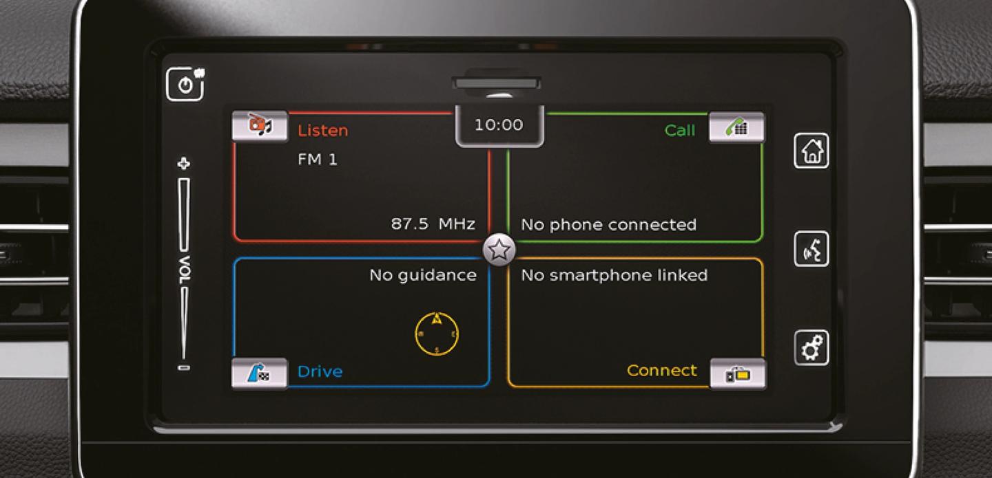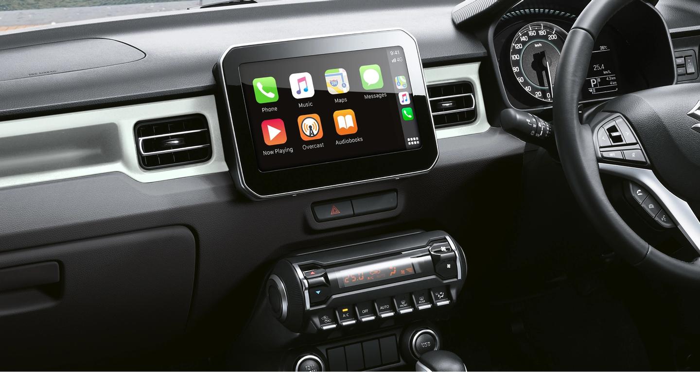 The Ignis features a 7-inch multimedia touchscreen which integrates audio, reversing camera, and connectivity to Apple CarPlay® and Android Auto™.